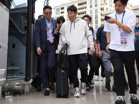 野球の国・地域別対抗戦、第6回ワールド・ベースボール・クラシック(WBC)の準々決勝でベネズエラに敗れた日本代表「侍ジャパン」の井端弘和監督(中央)が15日、退任する意向を示した=米フロリダ州マイアミ 【時事通信社】