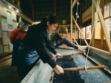 滞在中のアクティビティーとして、周辺の和紙工房での本格的な和紙すき体験も用意する(写真:Tsutomu Ogino(TOMART:PhotoWorks))