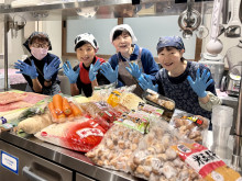 撮影に応じる炊き出しボランティア「福井おもてなしガールズ」のメンバー