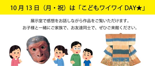 こどもワイワイDAY★を10月13日に開催します。お子様やお友達と、展示室で感想をお話しながら展示をご覧いただけます。