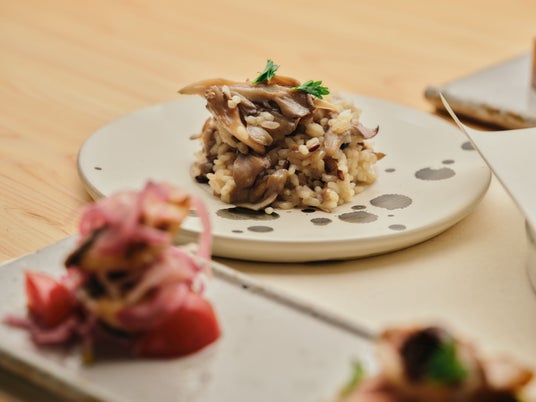 お食事は、地元の創作フレンチ〈MarPe〉の谷橋シェフが監修する特別メニューをご用意。福井県で採れた食材を最大限に活かしながら、越前和紙や工芸の世界観に触れられるお食事をお楽しみいただけます。夕食のメイン料理は、越前和紙を用いた奉書包焼き。SUKUオリジナルの越前漆器や越前焼など、産地ならではのテーブルウェアを使った設えもお楽しみいただけます。また、近隣のローカルなお食事処もご紹介できますので、滞在スタイルに合わせてお選びください。
