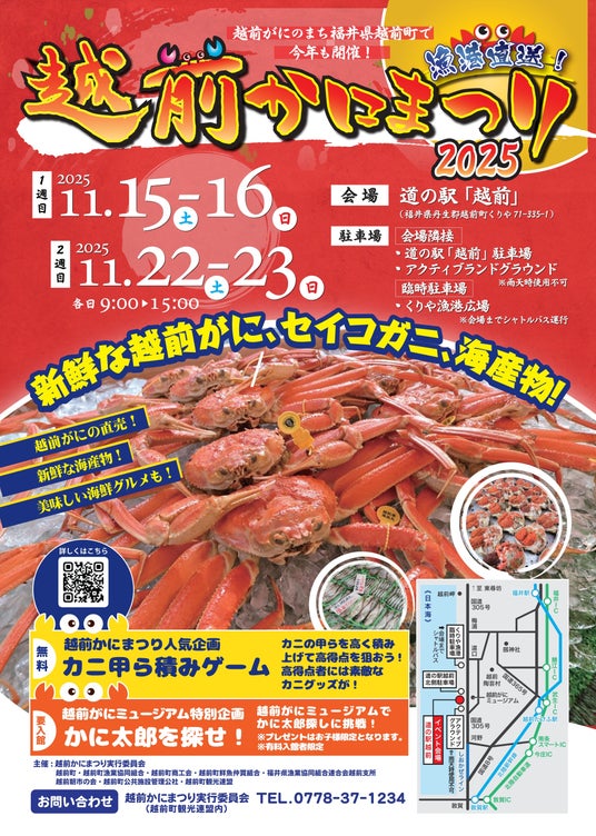 その越前がに漁解禁に合わせて毎年行っているカニの祭典「越前かにまつり」ですが、たくさん開催して欲しいというお声を多くいただくことから、今年も全4日間開催することとなりました!