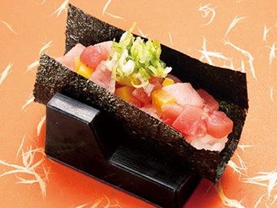 二口サイズの手のひら小丼です。横浜生まれの寿司屋「濱一貫」の名物「姫丼(R)」がにぎりの徳兵衛とコラボしました。一口目はそのままで、二口目は海苔にのせてお召し上がりいただくことで異なる美味しさをご堪能いただけます。