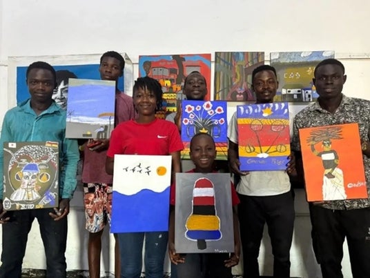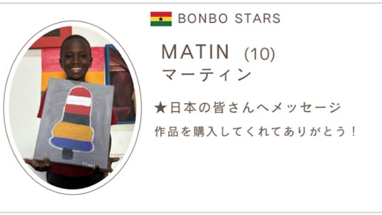 BONBO STARSとは、美術家・長坂真護氏のアートプロジェクトから誕生した、ガーナのスラム街・アグボグブロシー*から生まれたアーティスト集団です。彼らの作品は日本やアメリカ、ヨーロッパなど世界各国でこれまでに200点以上販売され、売上の10%が作家本人に還元されます。その収益は、アーティスト本人が自分自身の未来を切り拓くために、学費に充てたり家を建てたりすることなどに使われています。