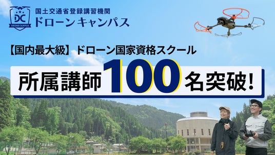 日本最大級のドローン教習ネットワークを展開する、むげんのそら株式会社(本社:福井県鯖江市、代表取締役社長:久森章裕)は、運営する合宿型ドローンスクール「ドローンキャンパス」において、所属する講師数が全国で合計100名を超えたことをお知らせいたします 。