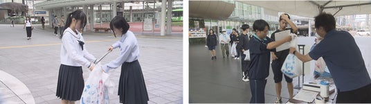 「高校生海洋ごみ削減動画コンテスト」の前に開催された「福井まちなか一斉ごみ拾い」にプレゼンに参加する高校生全員が参加。まちなかのごみを拾い、コンテストに向けて海洋ごみ問題への意識を高めました。