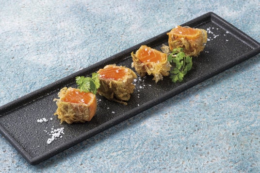 ふくいサーモン おぼろ昆布レアカツ 1,380円おぼろ昆布の衣で揚げてレアカツにすることで、ふくいサーモンの旨味をぎゅっと閉じ込めました。