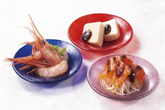 福井の冷菜3点盛り 1,580円ふくいサーモンのカルパッチョ、福井県産甘海老、永平寺御用達ごま豆腐。福井の魅力が詰まった盛合せです。