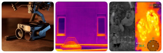 ※左から Zenmuse H30T、サーマルカメラ映像、ナイトビジョン/サーマルカメラ映像