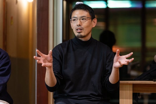 2.「未来のまちづくり」がテーマのトークセッションイベント初日のオープニングとして当社代表の澤村と、地元大溝の歴史・環境保全を担うまちづくり団体「大溝の水辺景観まちづくり協議会」の方とのトークセッションを実施。それぞれの立場から、未来に向けたまちのあり方を探ります。